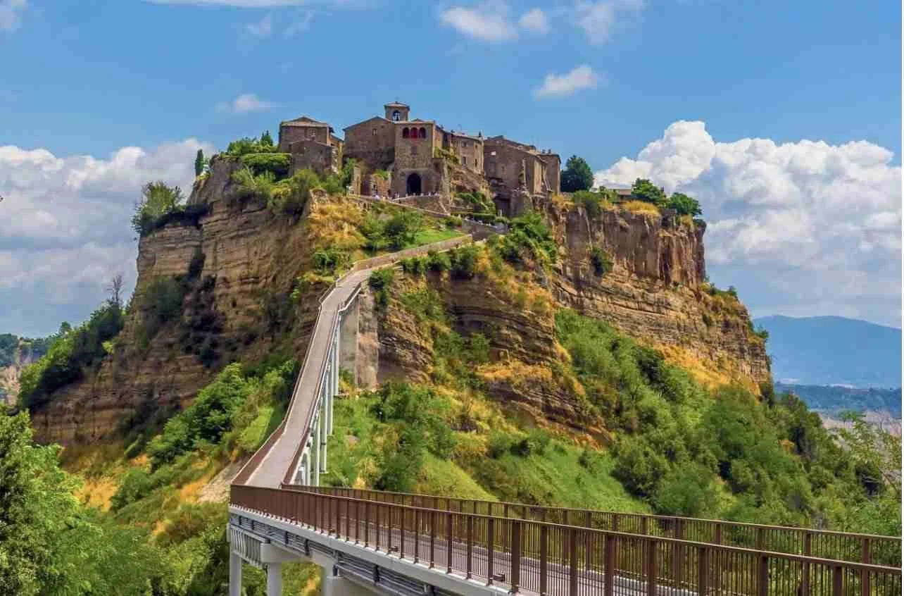 A slim bluff of land rearing up from the valley floor. Visitors must cross a 366-meter pedestrian-only bright, cantilevered over the void and rising steeply to meet the village walls. The feline population is padded out with just 12 human beings. It could be custom-made for Instagram!