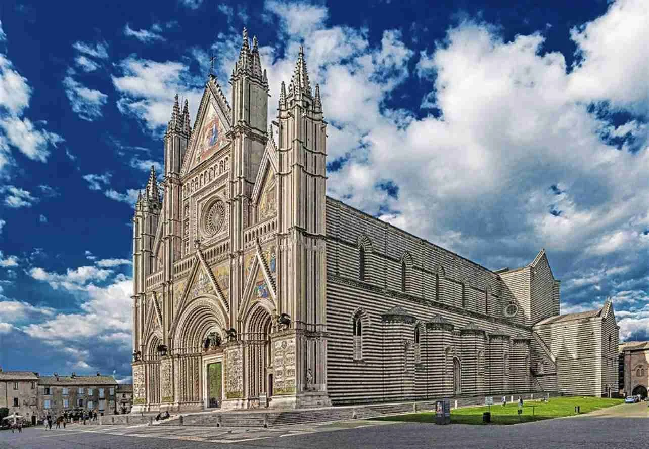 The Orvieto Cathedral—one of the most visually stunning in all of Italy—has a rose window and intricate mosaic façade with Signorelli frescoes inside. Strolling mazes of narrow streets, one is charmed handicraft workshops, art galleries, food markets, wine bars, and family-owned local cuisine.