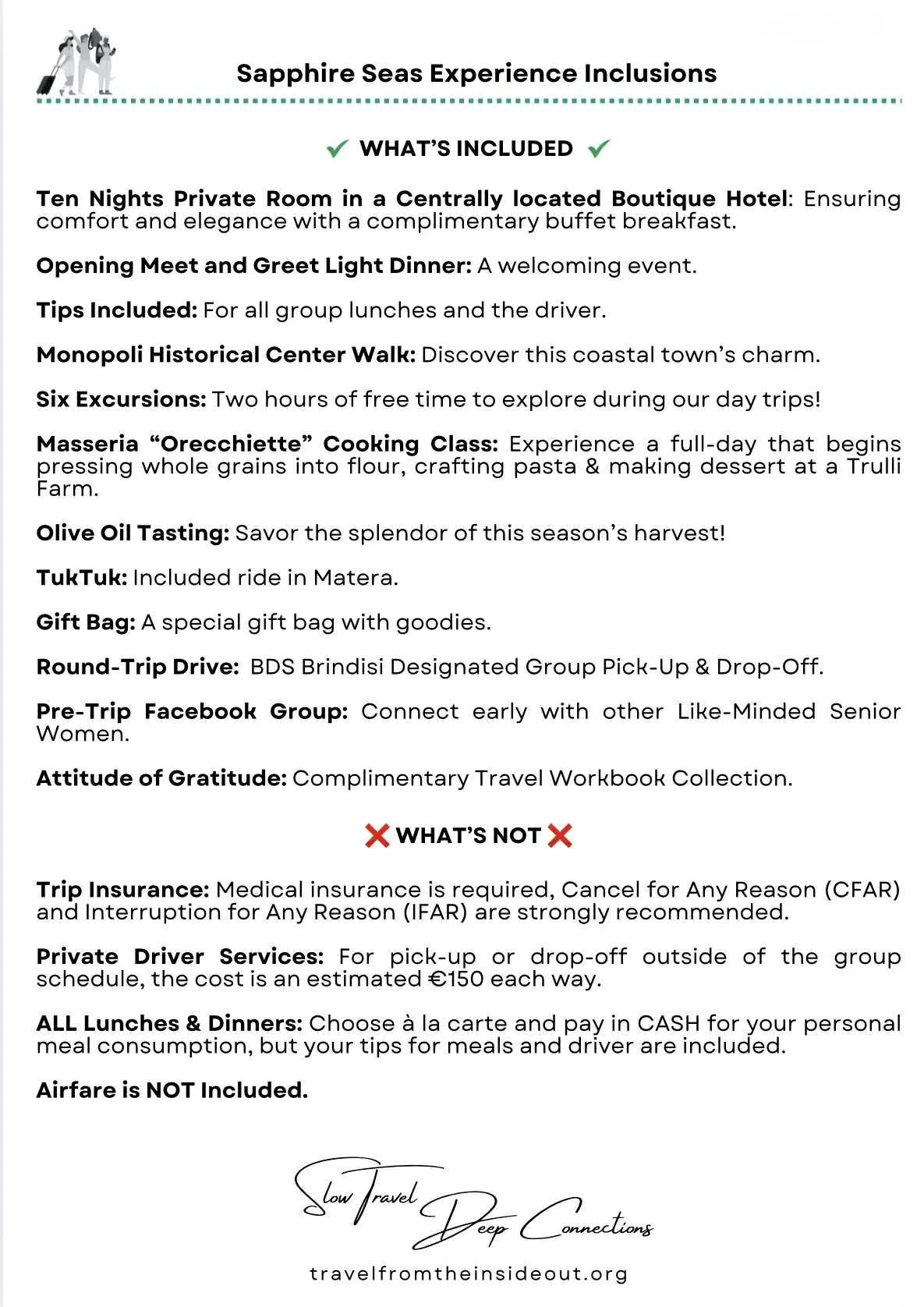 Once you have made your deposit, please book a private call with Francesca to discuss cultural experience details and choose your room size!